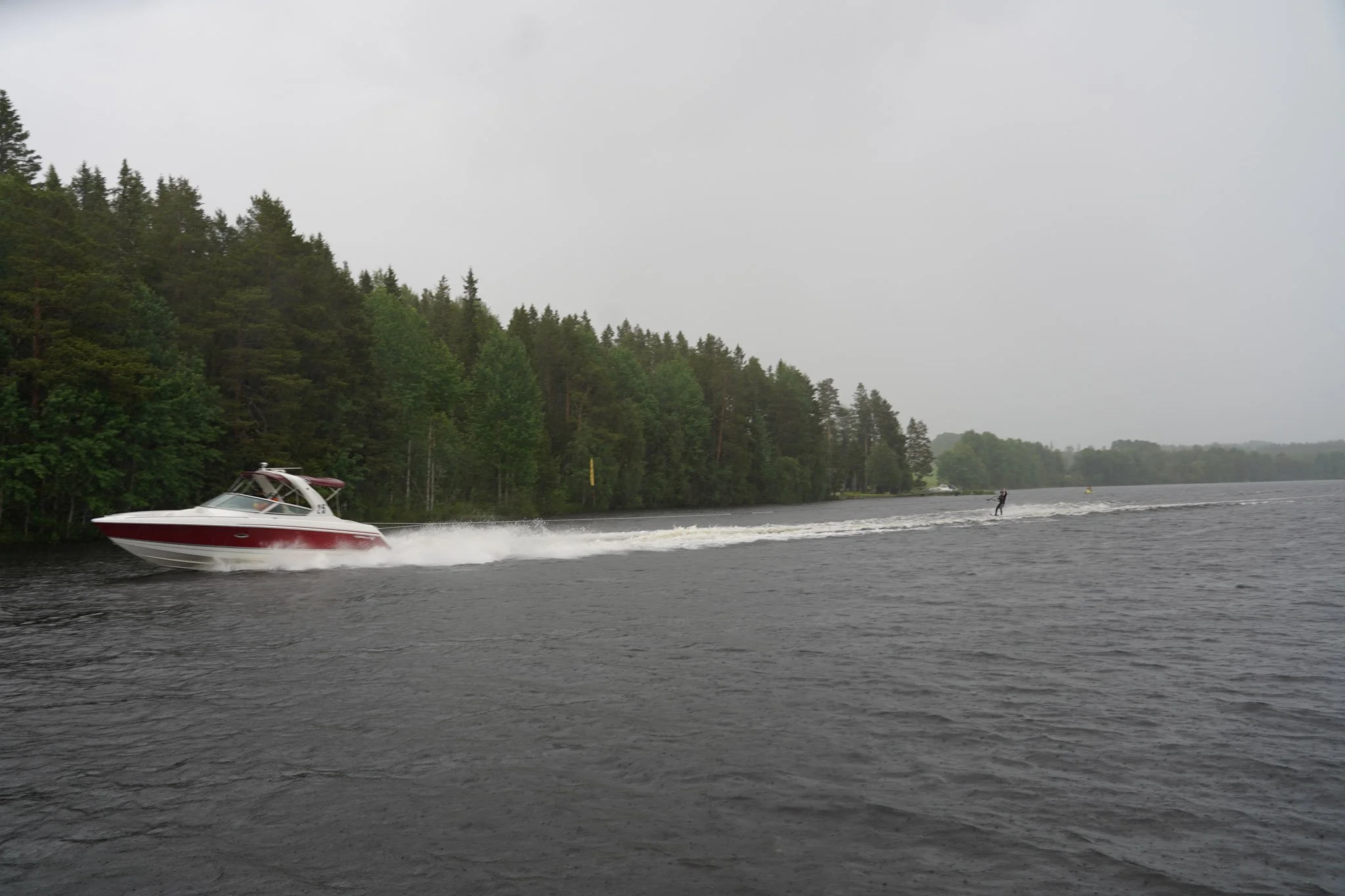Endast de tre deltagande, båtföraren, observatören samt åkaren per ekipage