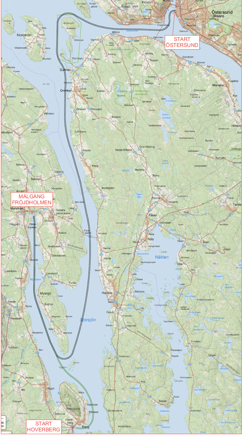 Fröjdholmen, målgången är utmärkt med bojar. Efter målgång återlämnas tidkort och flagga till sekretariatet.
